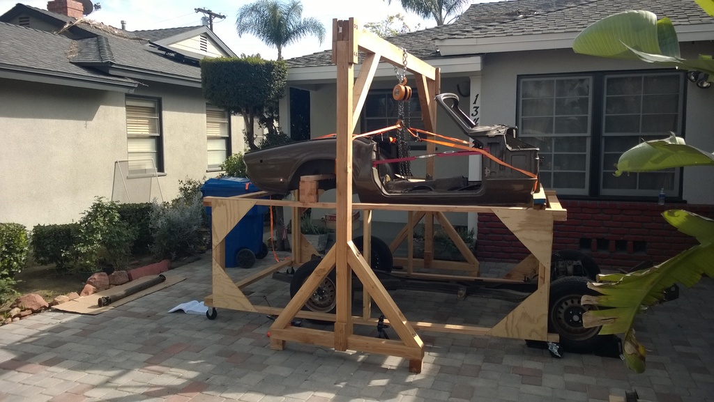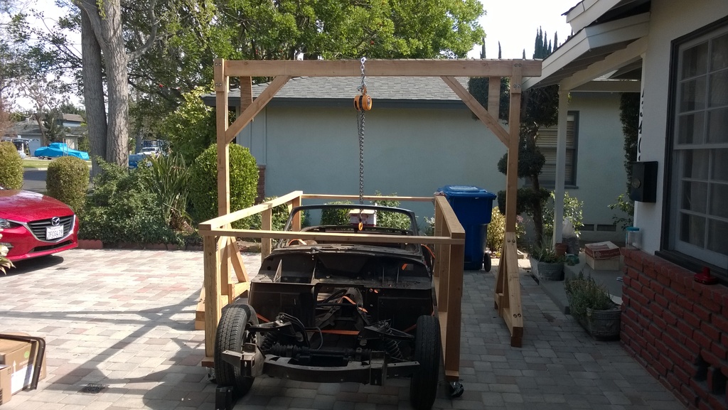 I bought a gantry from someone who had used it to move boulders around a home rock garden, and put the two together to take the car apart: