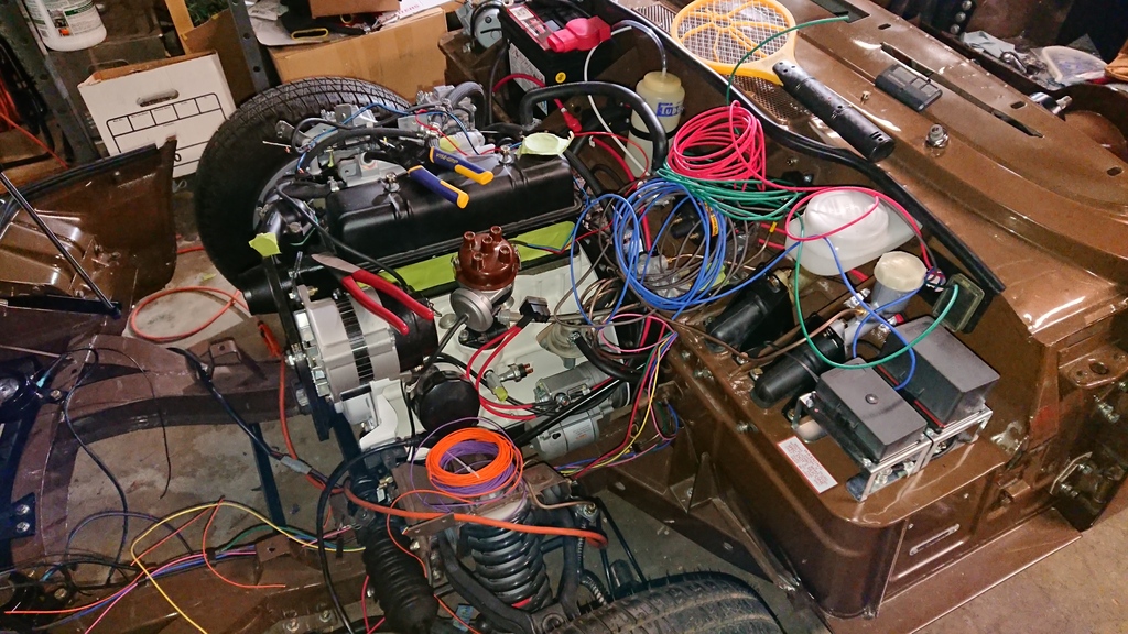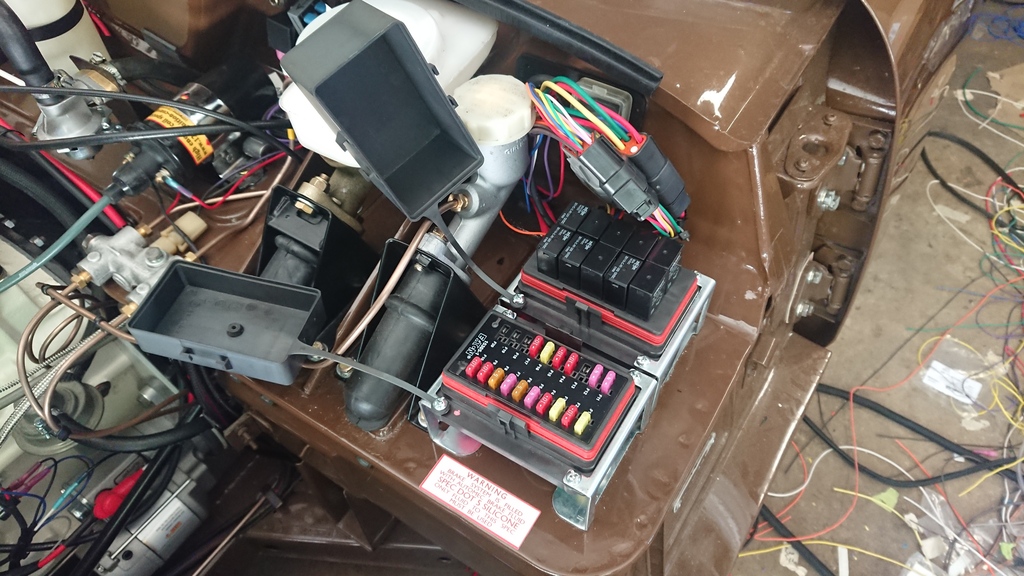 Instead of perpetuating the idea of always getting home before dark, I set out to completely redesign the wiring system. I would use a modern fusebox, connectors, and a bank of relays to keep electrical systems isolated and currents low, where possible. I added ground wiring to the car instead of relying purely on the conductance of the frame, which was a notorious source of flickering lights.