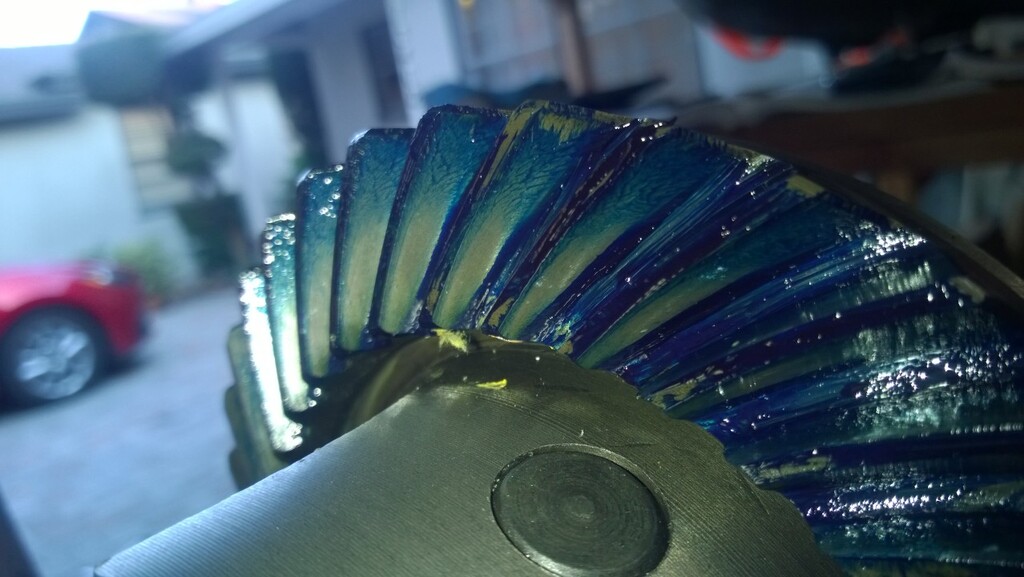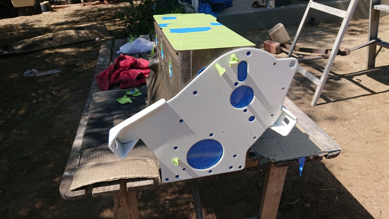 I had the gear case powder coated on the outside, and applied Glyptal paint to the inside. Glyptal forms a very smooth surface resilient to oil and most other chemicals, but it needs to be baked on in some kind of an industrial oven, which I lacked, so I built an “oven” out of cardboard and insulation, using a space heater to keep the temperature high. I would also apply Glyptal to the differential and the engine head.